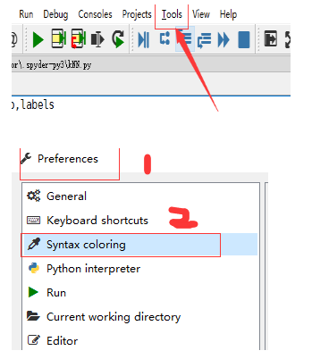 1.依次打开tools—>Preferences—>Syntax coloring选项
