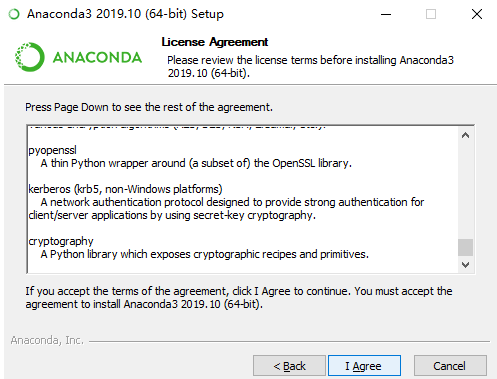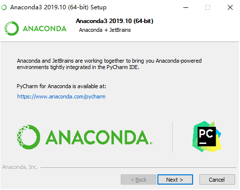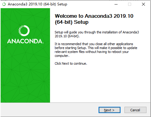 下载安装 Anaconda下载地址:https://www.anaconda.com/distribution/,页面拉到底,选择合适版本。 双击:Anaconda3-2019.10-Windows-x86_64.exe