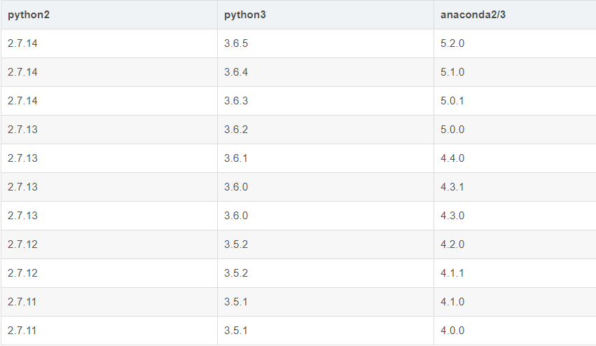 版本选择 下图为Anaconda于Python版本对应号