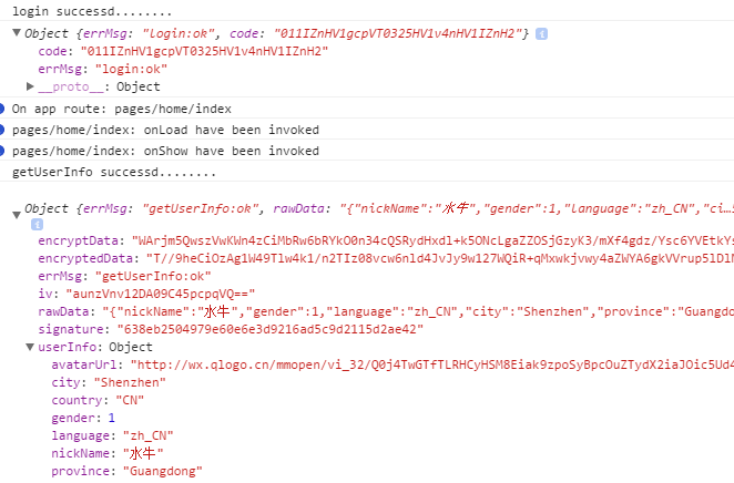 微信两个api所拿到的信息:login和getUserInfo
